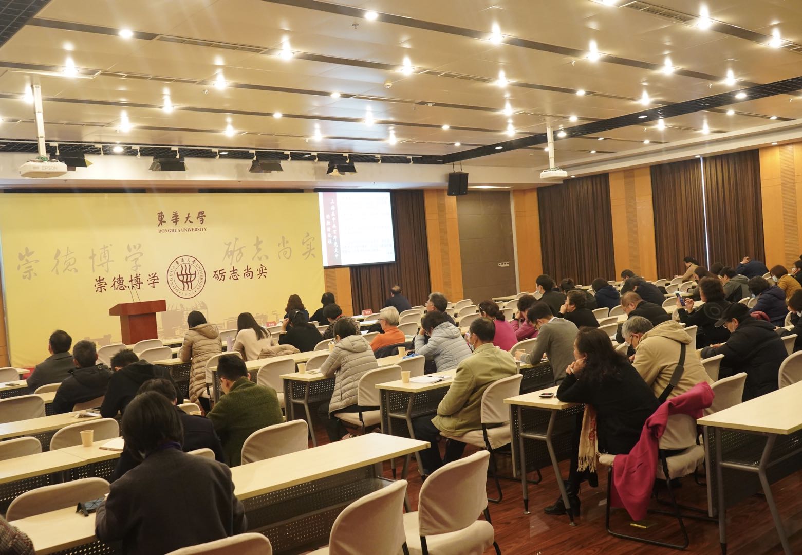 二级单位党组织正副书记、正副党员院长,机关部处、业务部门、工青妇副处级及以上党员干部,学校关工委讲师团老同志,全体教职工党支部书记、专职党务干部、思政课教师、专职辅导员等参加会议。除松江校区主会场外,延安路校区同步开设有视频分会场。