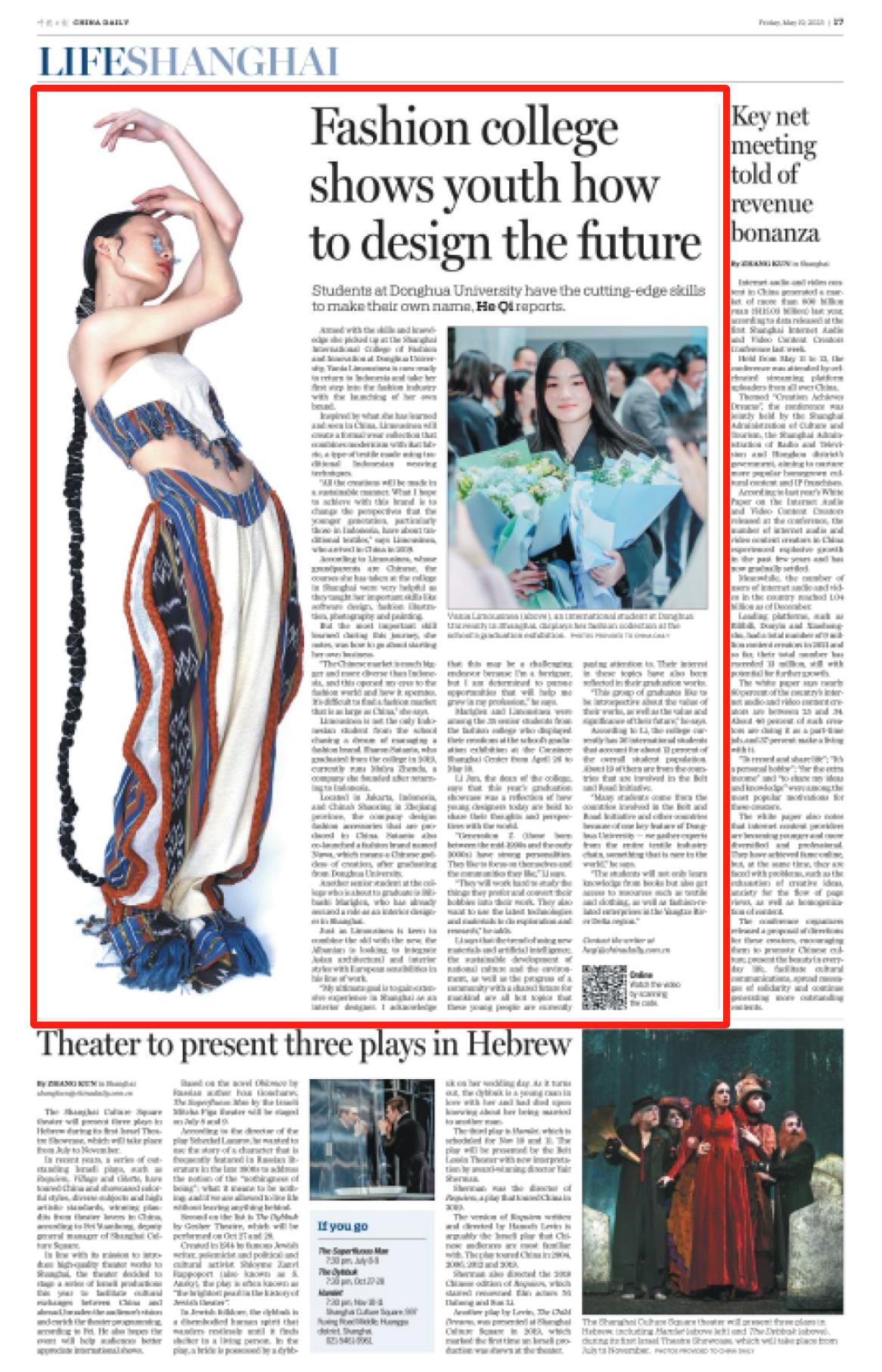 According to Limousinea, whose grandparents are Chinese, the courses she has taken at the college in Shanghai were very helpful as they taught her important skills like software design, fashion illustration, photography and painting.