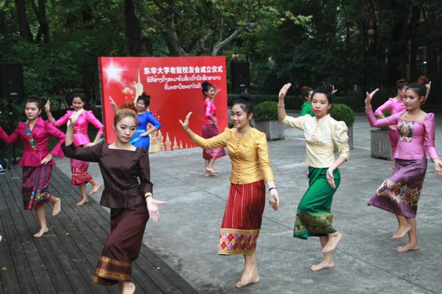 当天,数十名老挝校友和在校老挝留学生、校内外友人参加了本次老挝校友会成立仪式。学校澳大利亚新西兰校友会还特别发来贺信。仪式现场,老挝学子还在极具特色的老挝民族音乐声中跳起了曼妙的民族舞蹈,传递出对老挝校友会成立的喜悦。