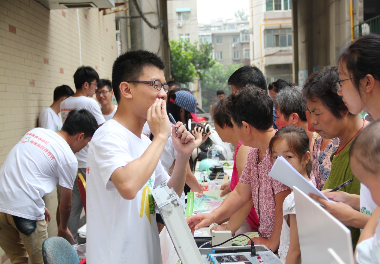 实践团成员们将科学商店的品牌活动“便民服务日”及“科普大讲堂”带进济南市泺口街道金牛社区。“便民服务日”活动中,实践团推出了农药残留检测、空气甲醛检测、电磁辐射检测、DIY护手霜以及益智游戏等多个参与性和互动性很强的服务项目,活动同时发放了由我校科普志愿者编写的科普读物《生活百科》以及《科普宣传手册》。“科普大讲堂“活动在金牛社区举行,“夏令防暑”、“辨伪求真”、“电磁奥秘”三个贴近生活的主题,融入了现场体验、互动答题等环节设计,带给社区居民一场科普盛宴,吸引众多居民前来,受到社区居民及领导的好评和赞许。志愿者用所学专业知识服务大众,帮助社区开展形式多样的科学普及活动,提高公众的科学意识。此外,实践团还与山东大学唐仲英爱心社开展了志愿服务经验交流。