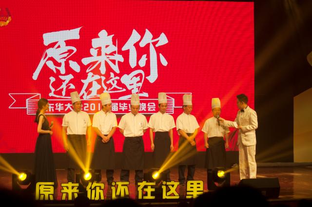 在“当下不负”篇章,晚会特别邀请了陪伴同学们大学四年的食堂和宿舍管理的工作人员代表,为他们送上祝福。来自松江校区第一食堂的大厨们更是带来了三道精心准备的菜品,现场送给在座毕业生们,将晚会气氛推向高潮。宿管阿姨们则以一曲《感恩》唱出了他们对毕业学子的关爱之情。纺织学院2013届硕士毕业生单建波现场演唱了为毕业晚会而作的原创歌曲《把青春留在这里》,抒发了每一名东华学子的爱校荣校之情。