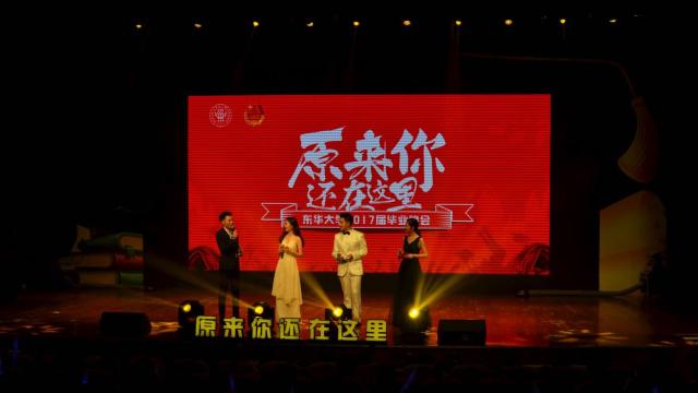 “陪我在东华的路上走一走,直到所有的灯都熄灭了也不停留”……带着东华的四年回忆,带着师长的谆谆嘱托,毕业不说再见,现场不少毕业生潸然泪下,晚会在一首改编自《成都》的《东华》歌曲中落幕。