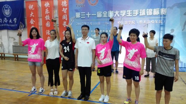 我校女子手球队成立于2002年,曾多次获得全国大学生手球锦标赛乙组(业余组)冠军,自2012年升到丙组(专业组)以来多次取得好成绩。此次比赛是我校女子手球队继2014年全国大学生手球锦标赛专业组首次夺冠后,又一次站到女子最高水平组的领奖台。
