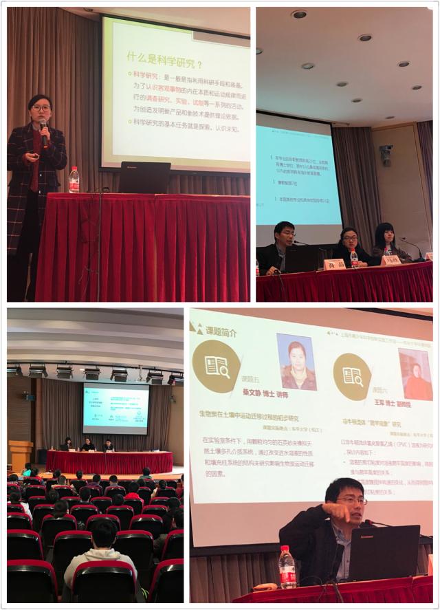 开班仪式后,我校环境学院张艾老师主讲本期第一次基础课程《科学研究方法与能力的培养》,张艾老师从科研的定义及分类、科研能力的要素及培养、科学精神与科学态度等方面进行了深入浅出的讲解,课堂上师生互动热烈。