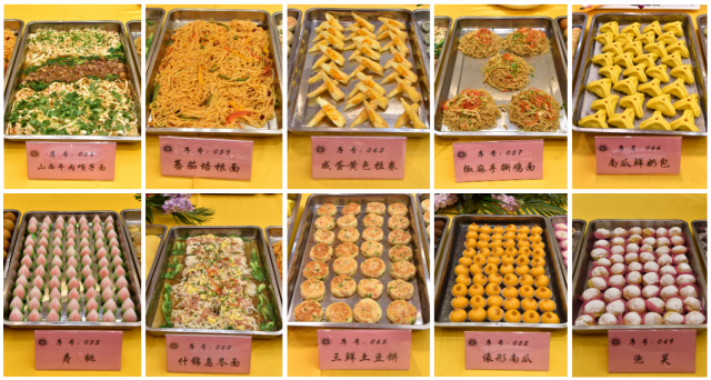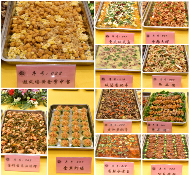 本次参加“厨艺展示”活动的菜品共有100个,其中红案菜肴74个,白案点心26个。参加“我最喜爱的十大食堂菜品”评选的菜品共有69个,其中红案菜肴43个,白案点心26个。150名学生和30名教师通过线上报名组成大众评审,现场品尝美食,进行评审投票。经票选,避风塘黄金掌中宝、金牌雪菜油爆虾、金丝虾球、重庆酸菜鱼、香辣大虾、酸汤香肥牛、椒麻鸡、豉汁蒸排骨、烤羊排、香辣水煮鱼和可乐鸡翅被评为红案篇“我最喜爱的十大食堂菜品”。山西牛肉哨子面、番茄培根面、咸蛋黄色拉卷、椒麻手撕鸡面、南瓜鲜奶包、寿桃、什锦乌冬面、三鲜土豆饼、像形南瓜及泡芙被评为白案篇“我最喜爱的十大食堂菜品”。