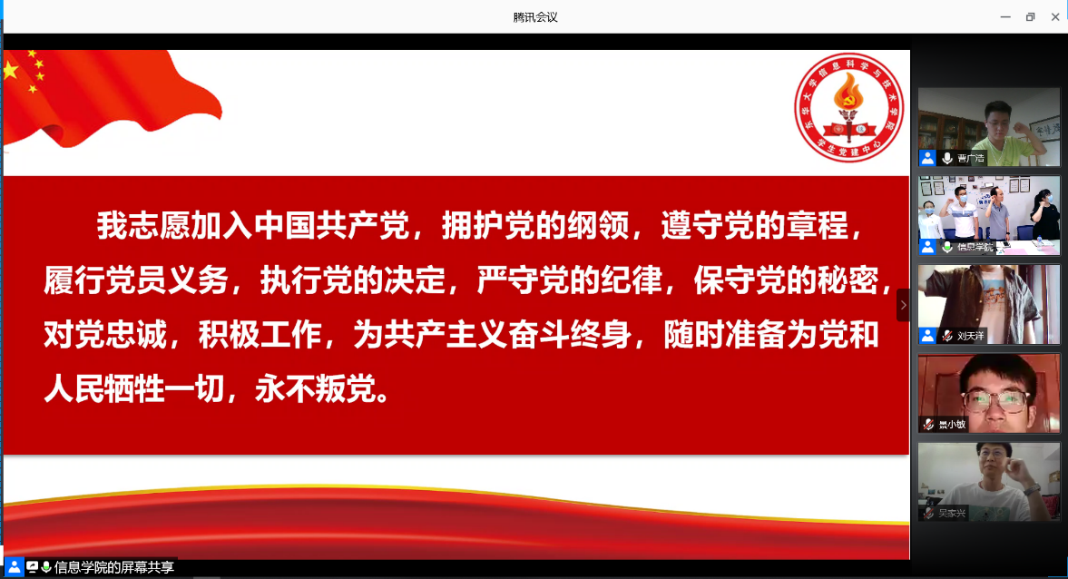 活动在重温入党誓词的铮铮誓言中结束。据悉,为认真贯彻落实《久久久久国产成人精品亚洲综合关于开展党史、新中国史、改革开放史、社会主义发展史学习教育的实施方案》,信息学院结合自身实际,研究制定《“以史明志、知往鉴来”——“四史”学习教育方案》,将开展“四史”学习教育作为巩固拓展主题教育成果的重要途径,通过以上率下、创新形式、深挖资源来推动“四史”学习教育高质量进行。此次将“四史”学习教育与毕业生党员离校教育相结合,进一步引导毕业班党员提高政治站位,从历史中汲取精神力量、汲取经验智慧、汲取坚守人民立场的定力,坚定不移做好自己的事情,更好推动改革开放再出发,不断增强“四个意识”、坚定“四个自信”、做到“两个维护”。接下来,信息学院党委将有序开展“厚植爱国情怀,争做学生楷模”、“红色纪念地推荐展”、“自动化学科发展史展”等“四史”学习线上线下系列活动,并与区域化党建共建单位、广富林街道蔷薇居民区党支部共同组织“学习强国积分赛、知识竞赛”等“四史”学习系列活动,提升“四史”学习教育质量,以昂扬姿态迎接建党99周年。