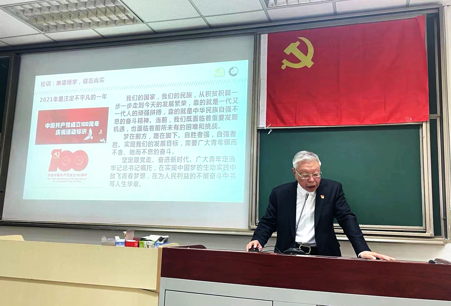 融通“两个课堂”,全方位延伸红色阵地。立足社区红色文化资源,学院党委积极组织学生党员进社区学党史,邀请社区党员进高校上党课,充分发挥社区红色资源的溢出效应,将“校门口”的红色教育基地变成党史学习教育的“活教材”。依托社区退休老党员、劳动楷模充实“初心如磐:百名机械人说党史”宣讲团力量,邀请三湘四季社区科研先锋党员、中国科学院上海应用物理研究所博导李民乾教授为学院发展对象培训班学员与三湘四季社区积极分子共上《从纳米科技看中国发展》主题党课,用活用好身边事与身边人物,通过讲述亲身经历讲好初心故事,引领学生党员读懂中国发展奇迹,进一步激发学史热情。