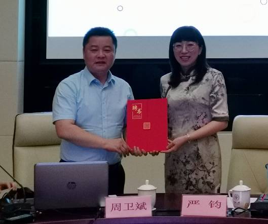 为进一步加强两校合作,充分发挥教育教学优势,合理利用教学资源,学校聘请周卫斌校长为校学生生涯导师,严钧为他颁发聘书。
