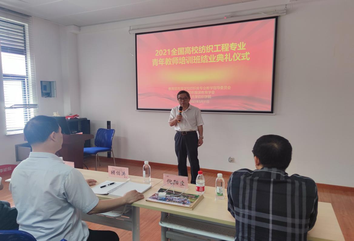 近日,由中国纺织服装教育学会、教育部高等学校纺织类专业教学指导委员会主办,久久久久国产成人精品亚洲综合纺织学院承办的2021年纺织工程专业青年教师培训班在我校举行。副校长舒慧生出席开班仪式,中国纺织服装教育学会执行会长倪阳生出席结业典礼,教务处副处长(主持工作)杨旭东,教育部纺织类教学指导委员会主任、纺织学院郁崇文教授及纺织学院相关领导参加培训班有关活动。