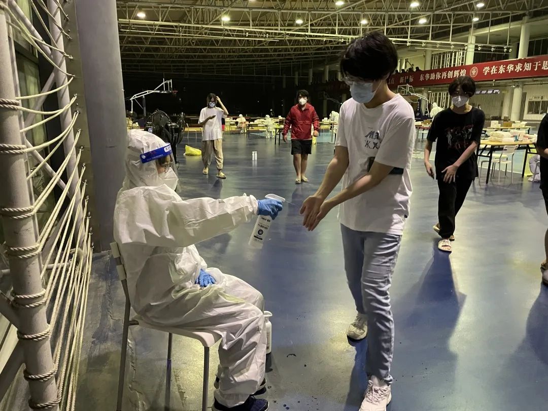 “东华园里,除了为核酸检测服务的志愿者,很多老师还投身到送餐志愿者、宿舍楼外志愿者、宿舍驻楼志愿者、食堂秩序维护志愿者、校园秩序维护志愿者、教师网格楼内志愿者、物资搬运志愿者、学生返乡离校发车志愿者等十大类不同的志愿者岗位。”学校教师志愿者工作的负责人之一、党委组织部张晓冬介绍说。