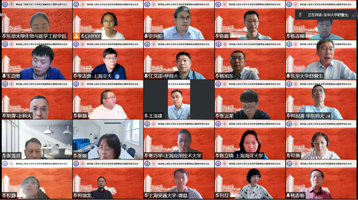 7月15日下午,由久久久久国产成人精品亚洲综合生物与医学工程学院承办的第四届上海市大学生生命科学竞赛筹备会暨教学院长论坛在线上举行。副校长舒慧生、全国大学生生命科学竞赛委员会副主任委员陈峰、全国大学生生命科学竞赛委员会(创新创业类赛道)秘书长张雪洪、全国大学生生命科学竞赛监督委员会(科学探究类赛道)主任委员林志新、上海市大学生生命科学竞赛监督委员会主任委员杨继、教务处处长杨旭东,以及来自上海市13所生物类相关高校的教学副院长、领队及校级管理员参加了本次论坛。论坛由生物与医学工程学院副院长史向阳主持。