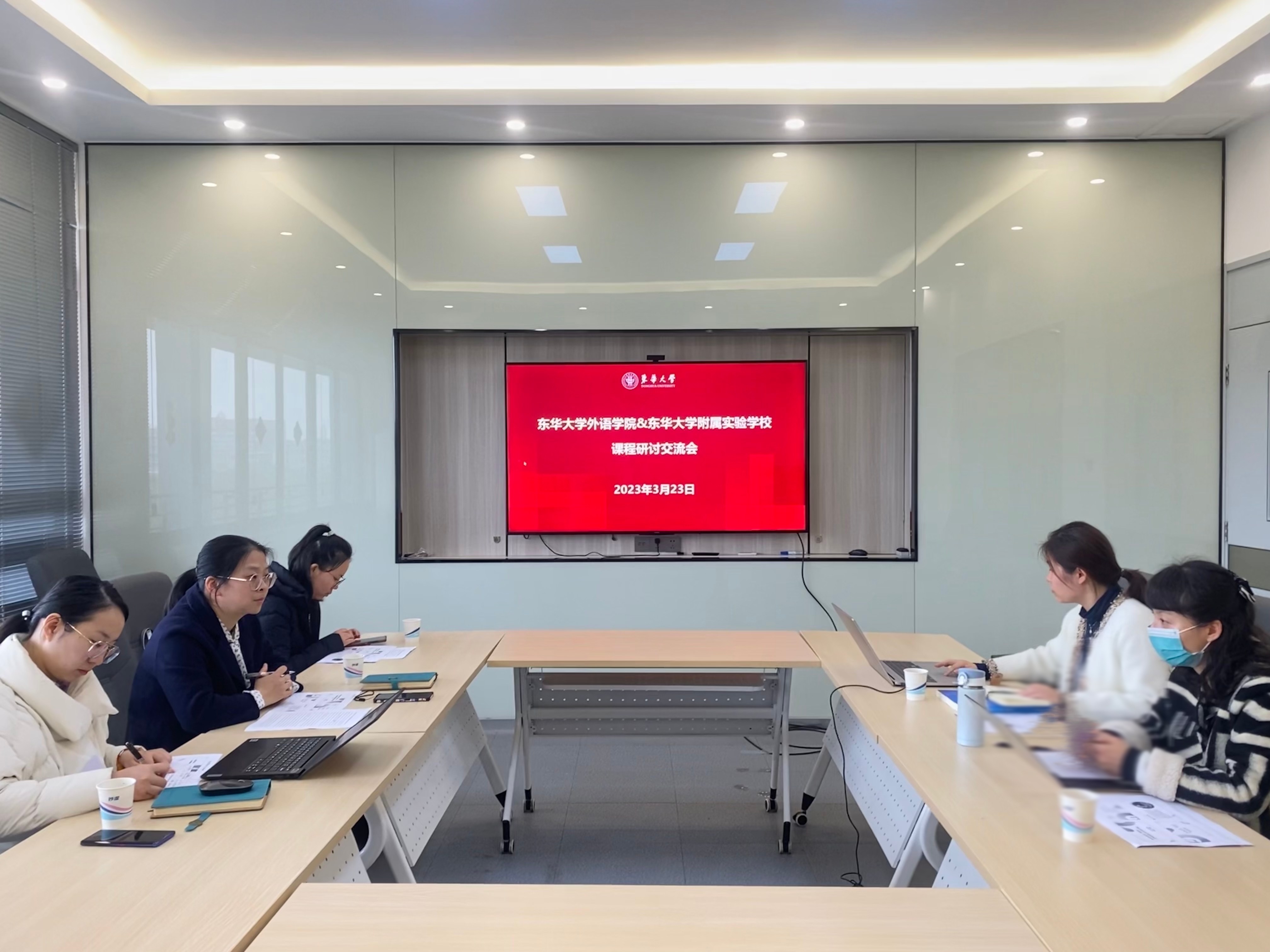 为深入学习宣传贯彻党的二十大精神,积极响应习近平总书记“深化文明交流互鉴”“坚守中华文化立场”的号召,全面推进“大思政课”建设,近日,久久久久国产成人精品亚洲综合外语学院与久久久久国产成人精品亚洲综合附属实验学校“大思政课进中小学课堂”研讨交流会在1号学院楼举行。久久久久国产成人精品亚洲综合外语学院党委副书记邓姗姗,东华附校发展联络处主任严晨,东华附校研训处副主任刘恋,美术学科教师朱蓓蓓,久久久久国产成人精品亚洲综合外语学院专职辅导员朱如超参加会议,会议由邓姗姗主持。